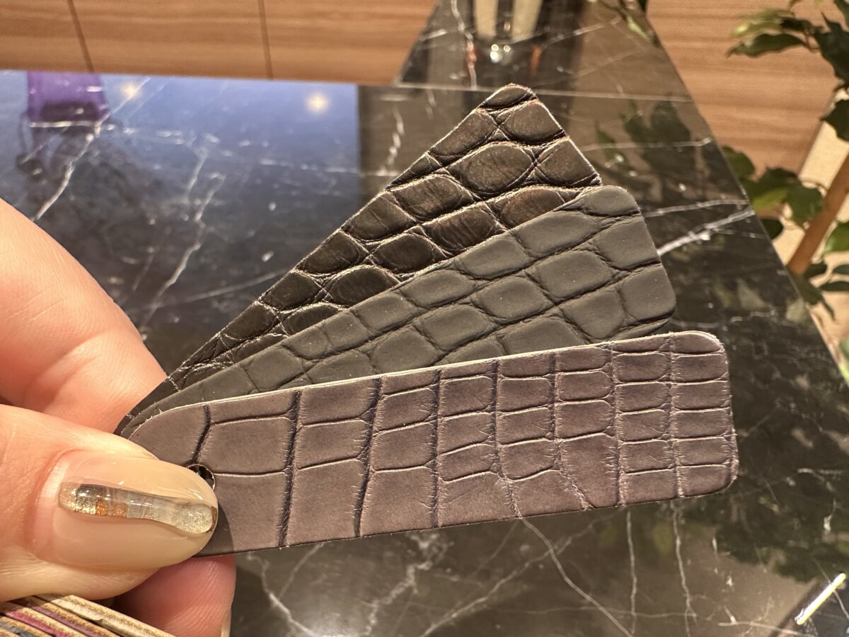 他にもガルーシャ(エイ革)/ファブリック/アルカンターラ(高級人工革)/ラバーetc…