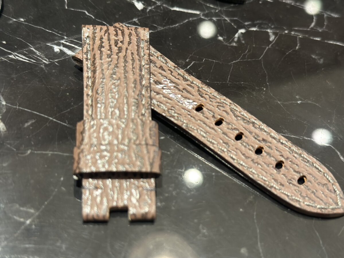 オーダーする方からは「仕上がりのイメージがつかめない」「純正と比べて質感はどうか」「サイズが合わなかったらどうしよう」などご案内するとこのようなお声がよく聞かれますが当店では各ブランド、お客様の時計に最適なサイズやバランスでご提案いたします。素材のサンプルもご用意していますので、実際に触れて色味や質感を確かめながらご相談いただけます。スタッフが一緒に形にしていくので初めての方でも安心して注文いただけますのでお気軽にお問い合わせください!