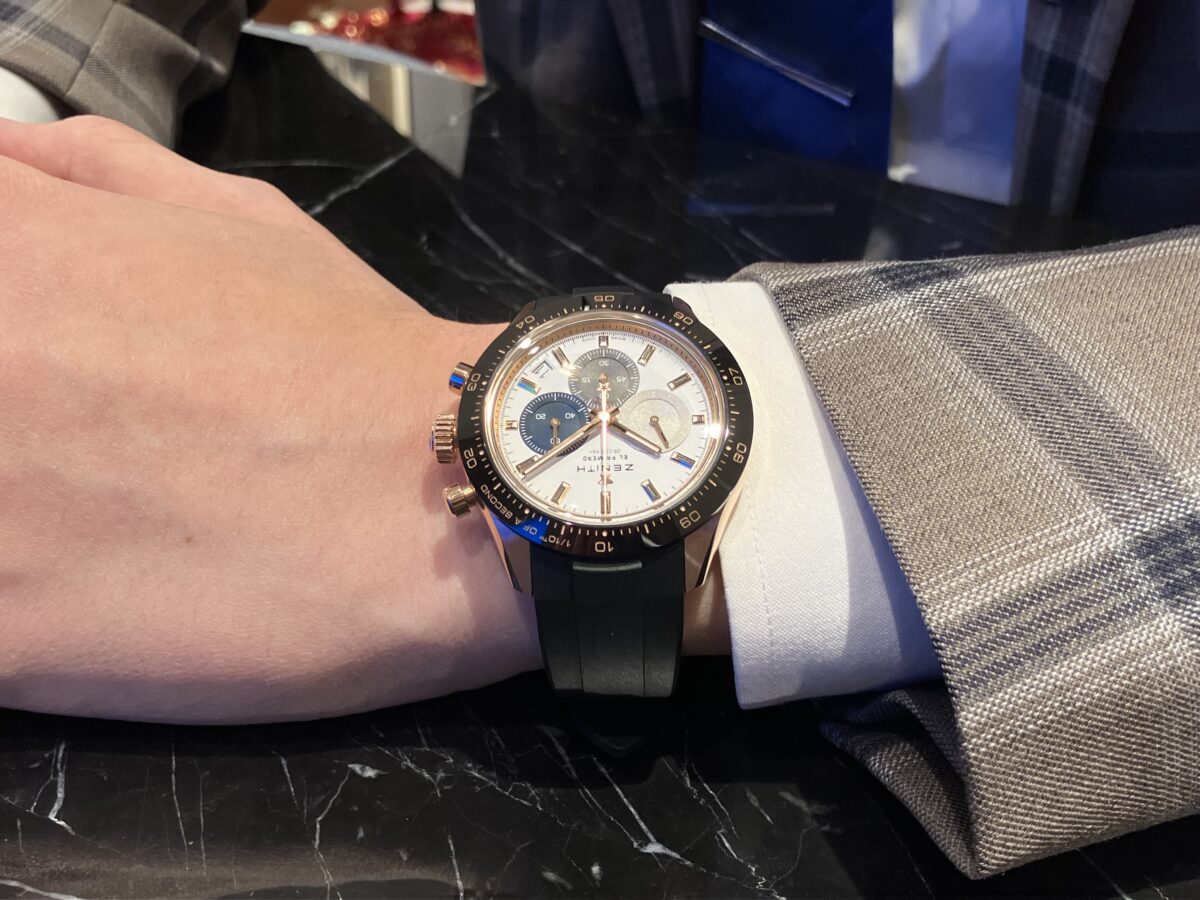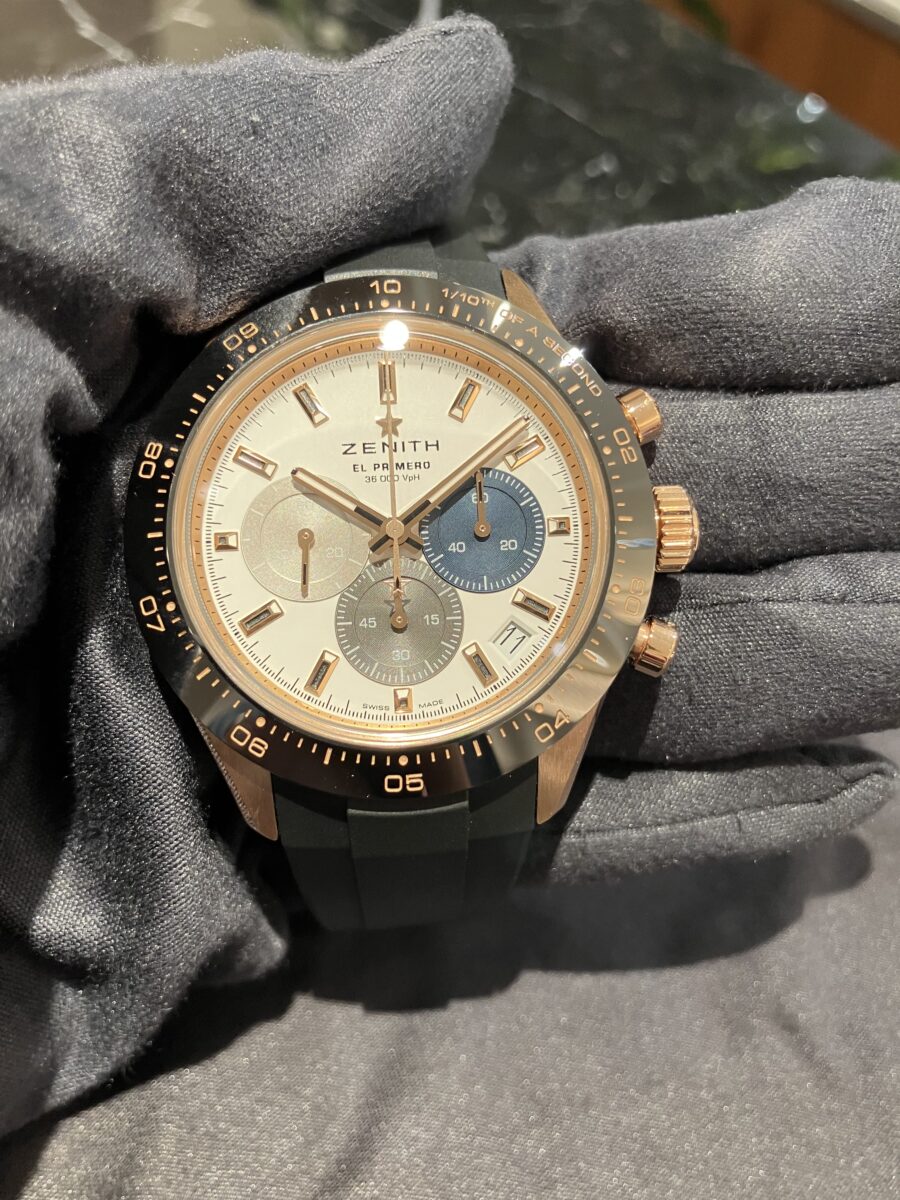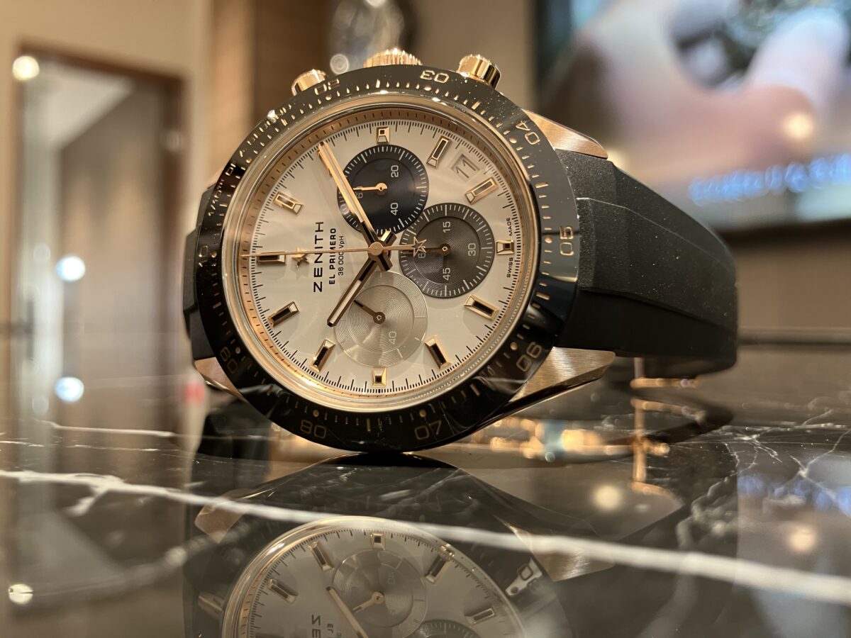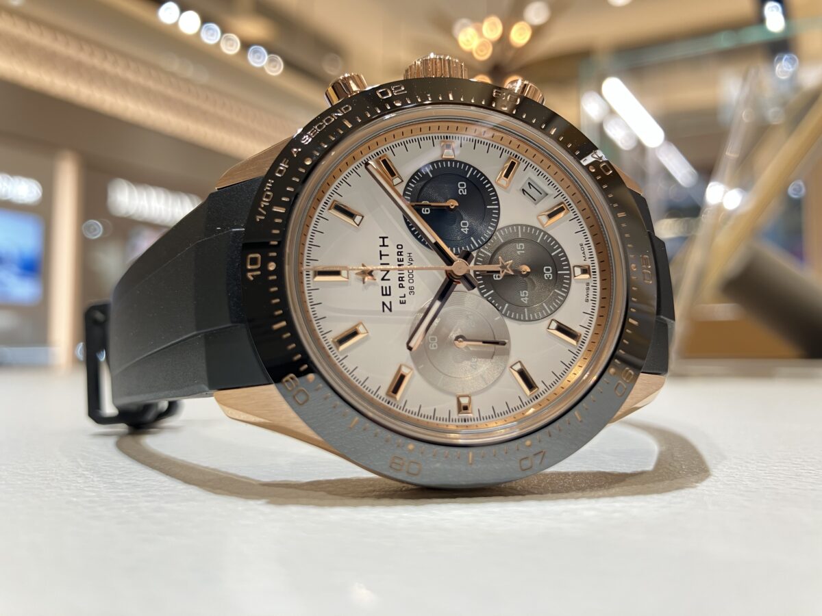 今回はゼニス クロノマスタースポーツの中でもゴールドを用いた上位機種をご紹介いたします。