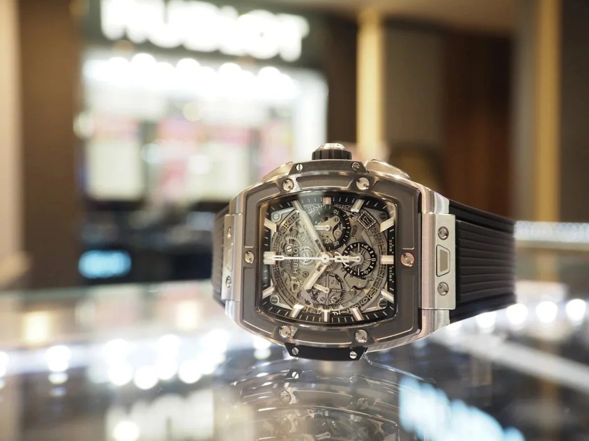 ウブロの最上位機種である「スピリット オブ ビッグバン」は、トノー型ケースとオープンワーク仕様のダイアルを備えた、ウブロのアイコニックコレクションのひとつ。