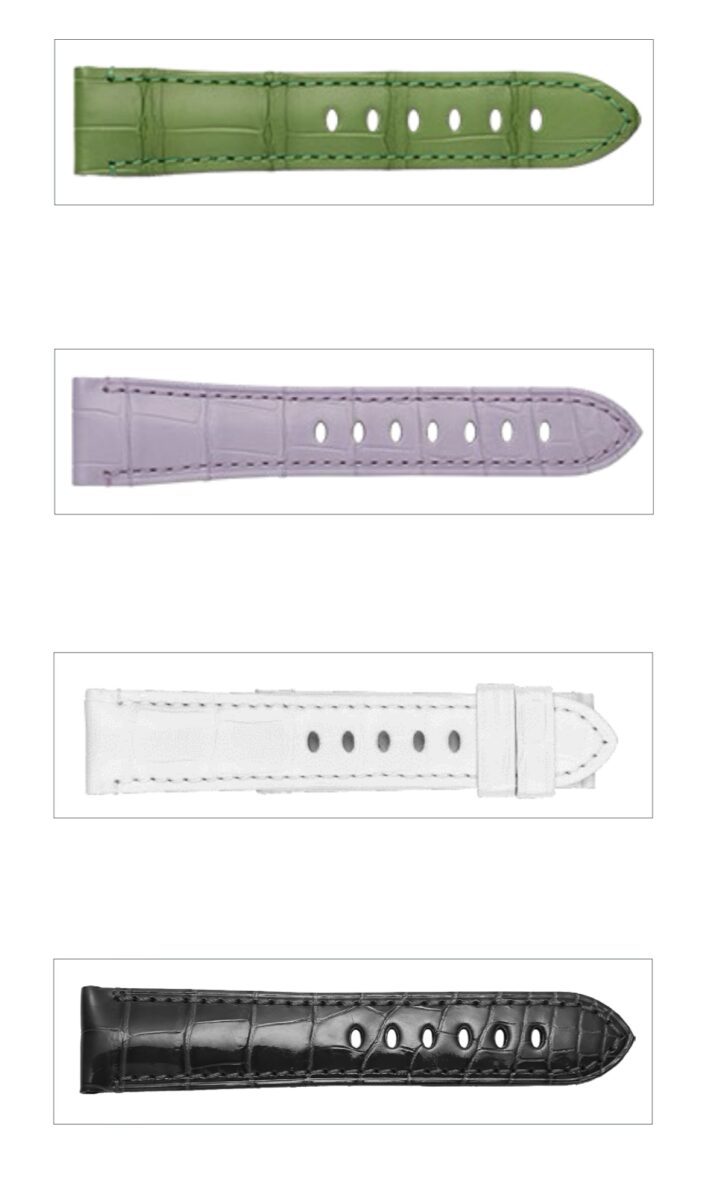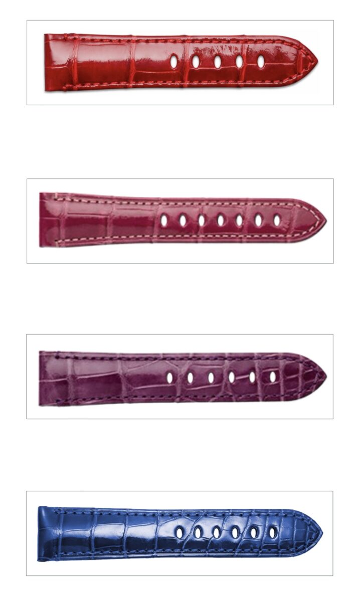 今回のモデルはピンクの可愛らしいレザーベルトを着けていますが、実はパネライのベルトはこんなにたくさんの種類があります。