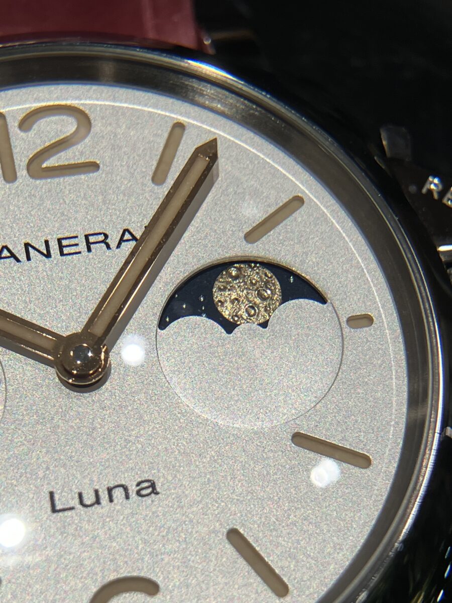 パネライのムーンフェイズってクレーターも再現していて、私の好きなポイントです。