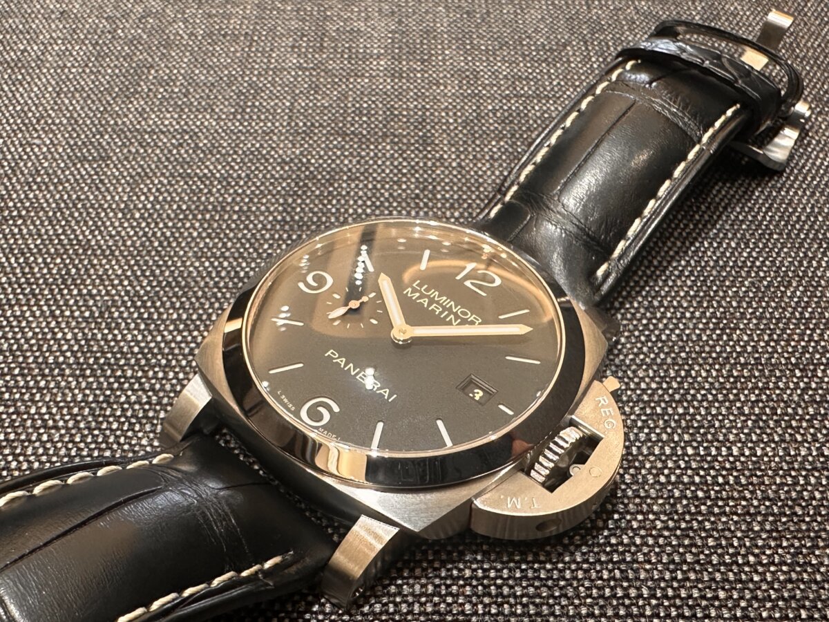 天気のいい日が増えてきましたね~♪おむすび屋さんで朝ごはん食べるのにハマっているおむすび🍙阿部です。そんな本日はパネライ ルミノールマリーナをご紹介いします!!!パネライの中でも”THEパネライ”定番モデル【PAM3312】すでにご存じの方が多いと思いますがぜひ”準新人販売員 ABE”の徹底深堀にお付き合いくださいませ!