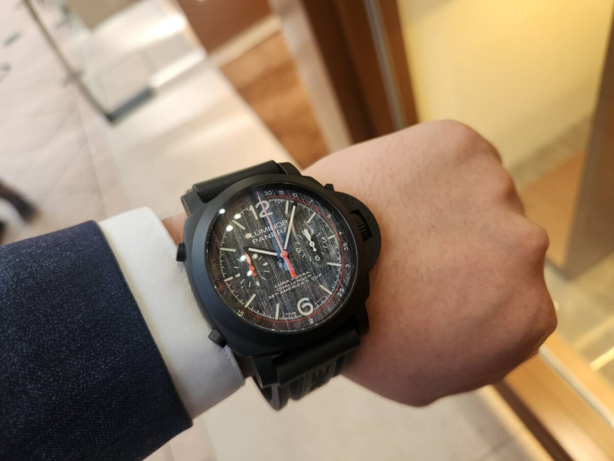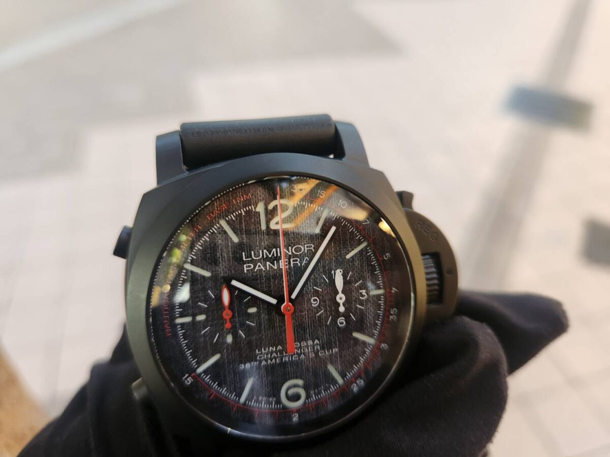 コンマ1秒の判断ミスが敗北に直結するこの極限環境で、パネライが用意した答えがルミノール ルナ・ロッサ クロノ フライバック PAM01037でした。