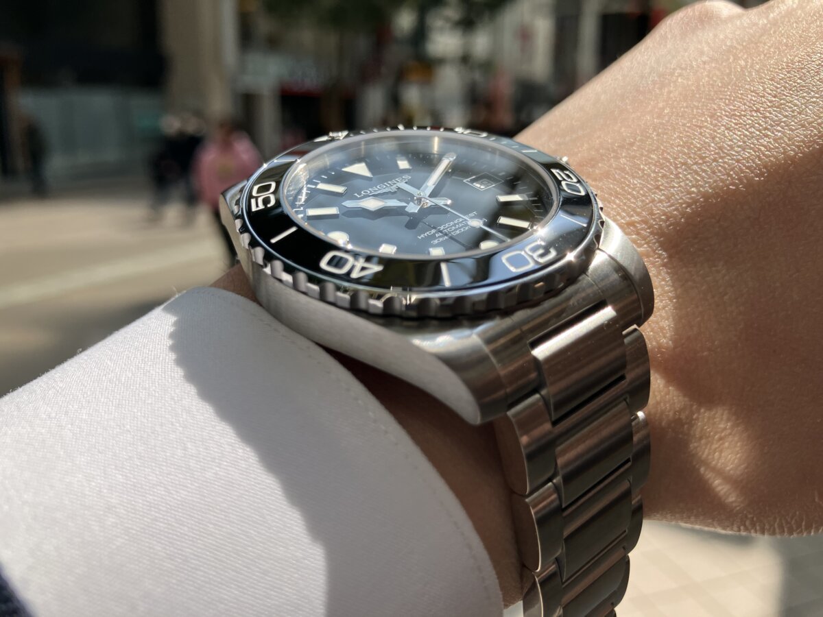 さらにステンレススティール製ブレスレットはケースと非常にバランスの取れたプロポーションを誇り、洗練されたHリンクブレスレットを採用。装着感を圧倒的に高め、腕乗りは申し分ナシ!(本当に素晴らしい。)