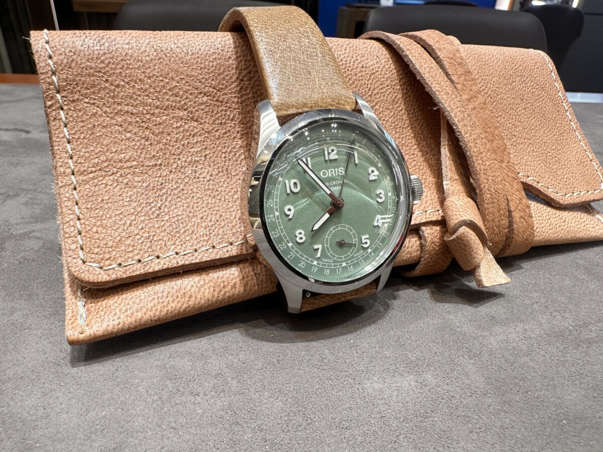 ✔オリスが誕生したスイス北部のへルシュタイン。自然豊かな故、野生の鹿が増殖しスイスの自然を守るために野生の鹿を毎年約1万5千頭駆除を行っています。その際に廃棄される鹿革を高品質のレザーストラップに生まれ変わらせたチェルボボランテを採用しています