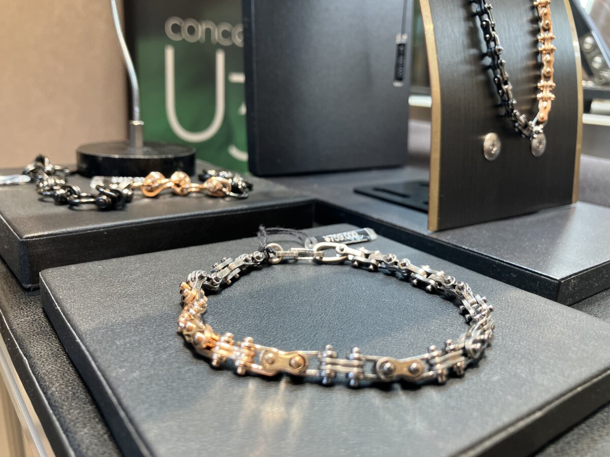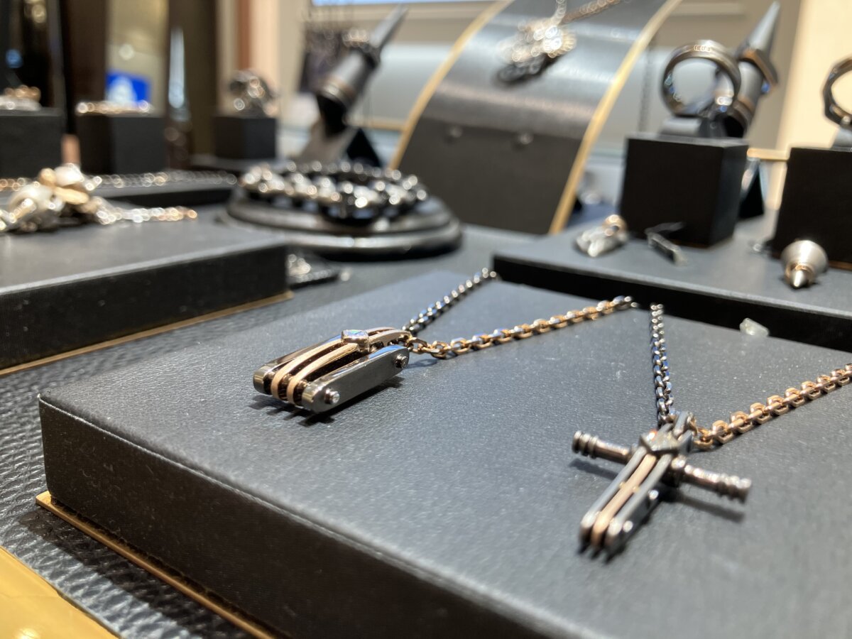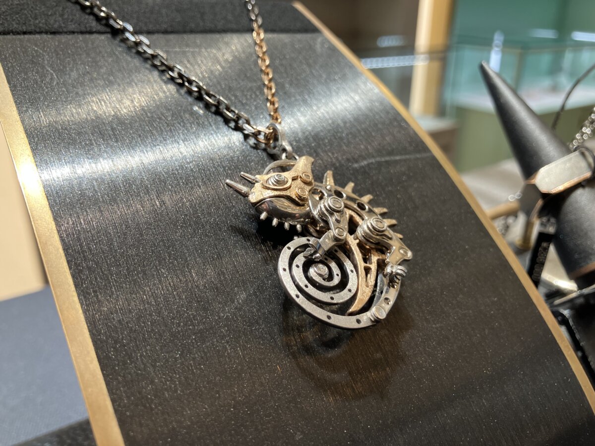 機械部品を模した独特なデザインが特徴であり、すべてのジュエリーは1人の職人により手作業で作られ、数十以上のパーツを組み立てる立体的な構造が魅力です。
