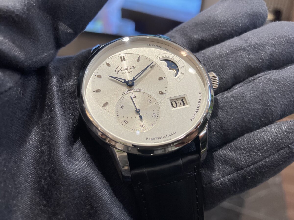 ムーンフェイズが付いた「パノマティックルナ」はパノシリーズのアイコンで、発表されてから20年以上もの間、グラスヒュッテ・オリジナルの中で1番人気のシリーズです。