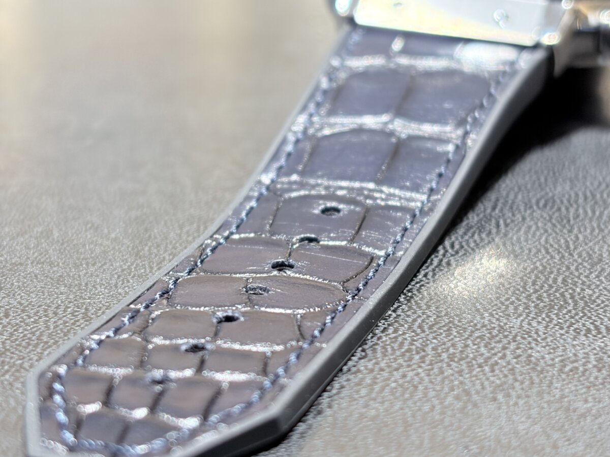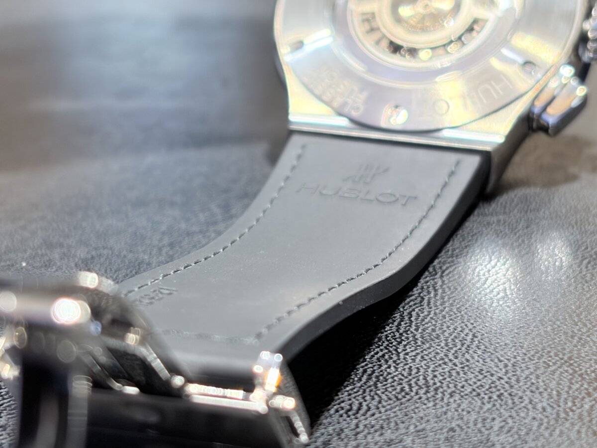 実は、HOBLOTのアリゲーターストラップの内側はブラックラバーが採用されております。
