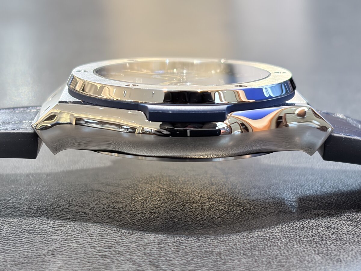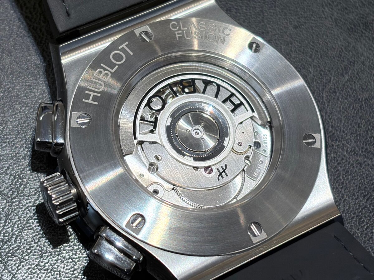よく見ないと気付かない小さなビスの形状にまで、HUBLOTのこだわりや時計に対する情熱を感じます。