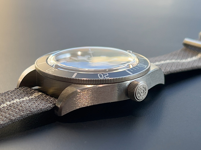 リューズにはチューダーロゴのローズが刻印されています。